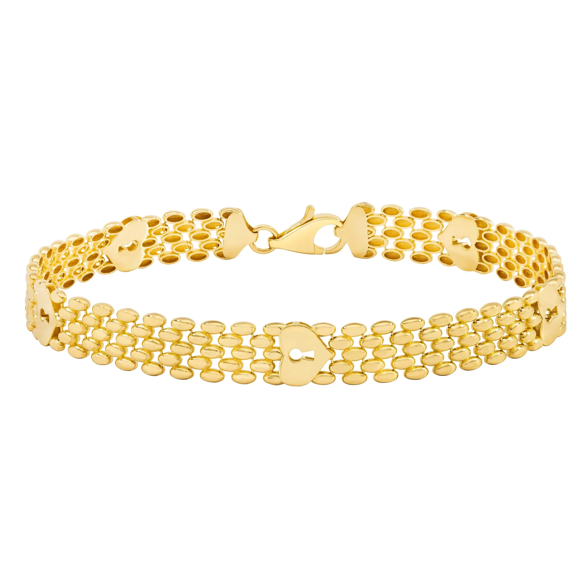 14KT YELLOW GOLD HIGH POLISH PANTHER HEART LOCKET BRACELET