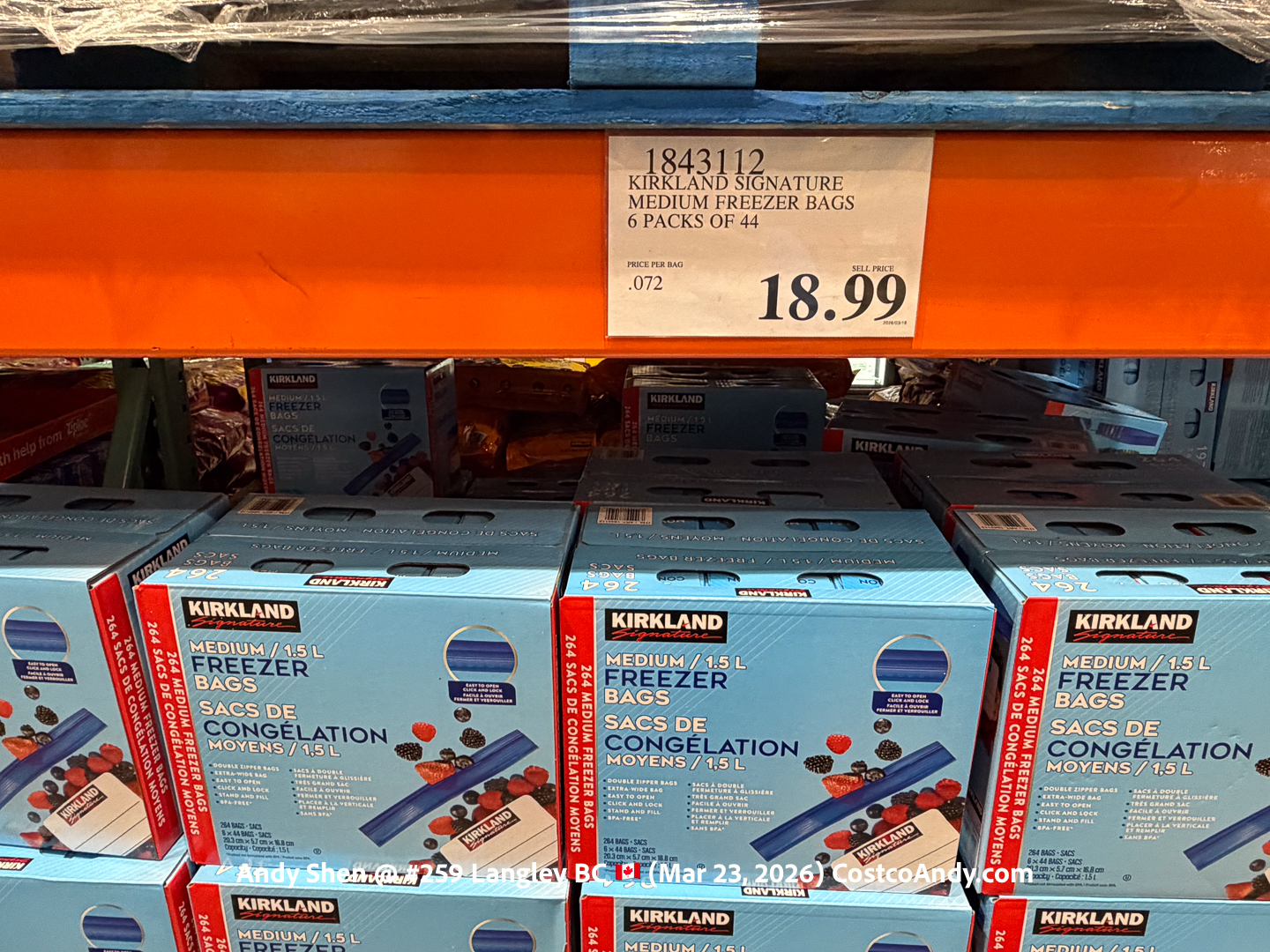 KIRKLAND SIGNATURE MEDIUM FREEZER BAGS 6 PACKS OF 44